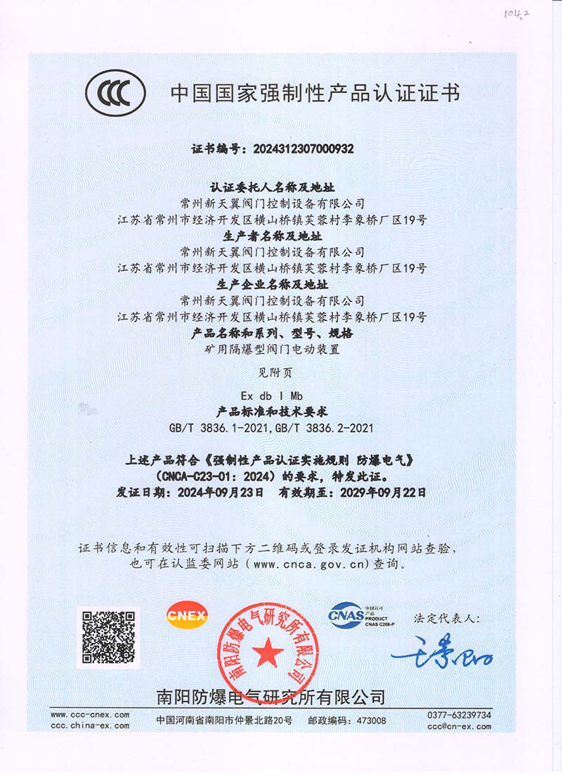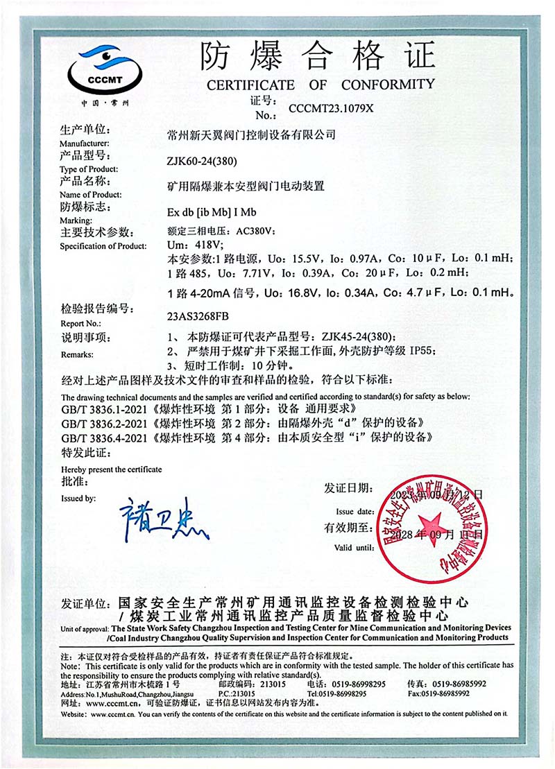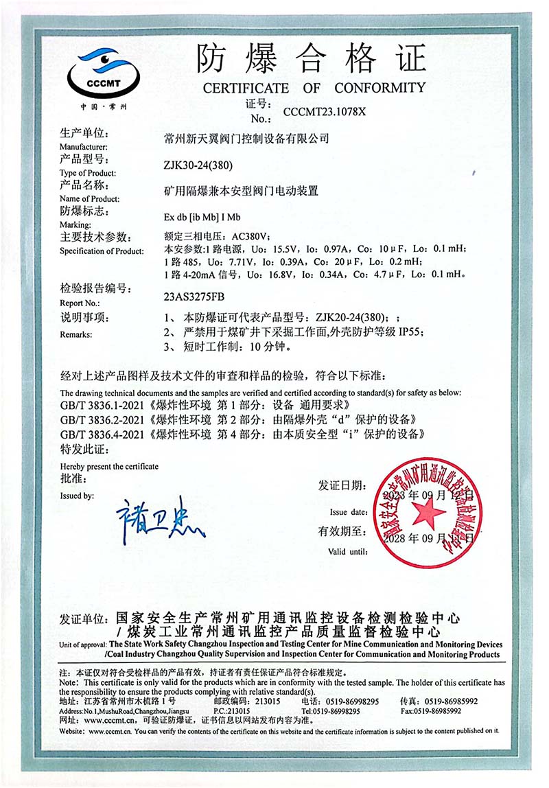 防爆Z10B Z10FB國家強制性產品認證CT4證書109.1