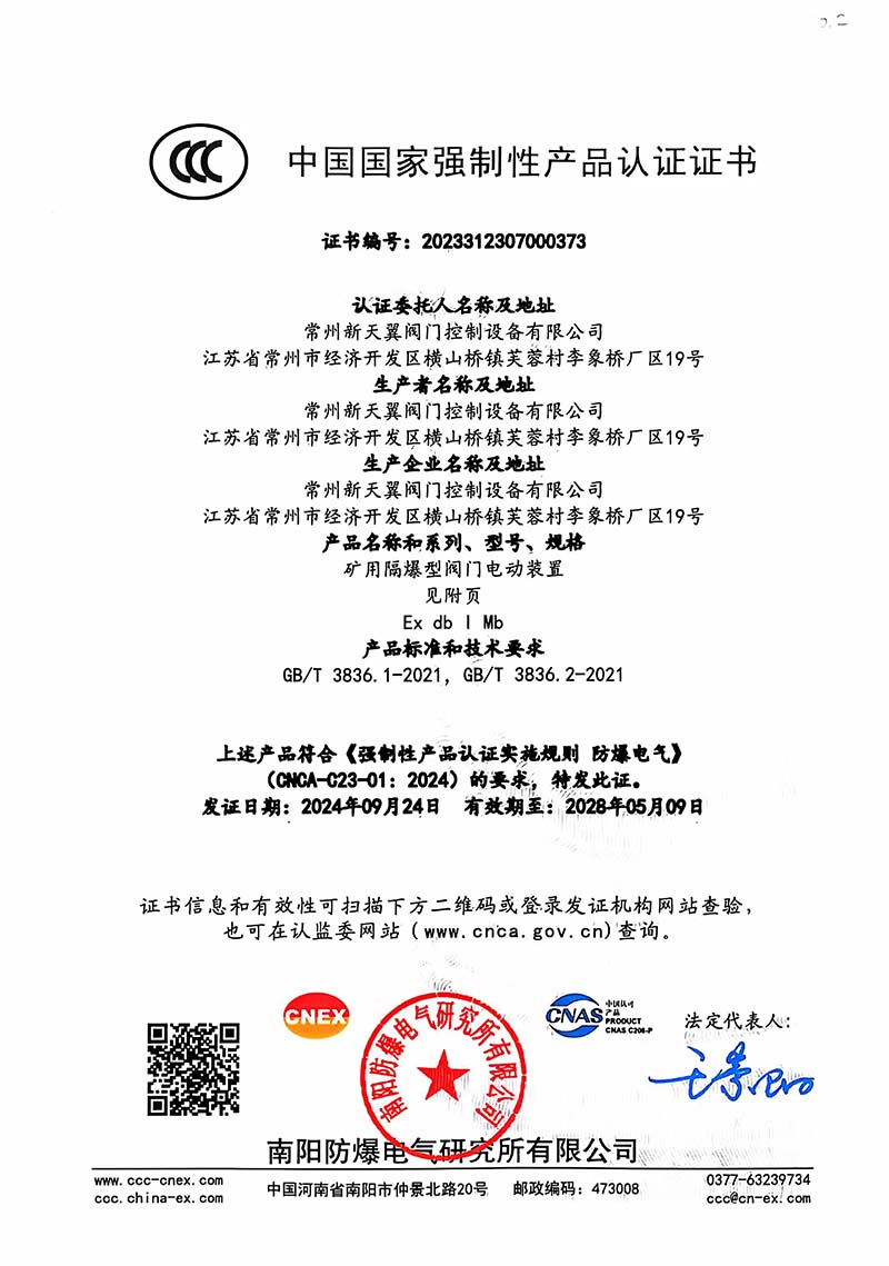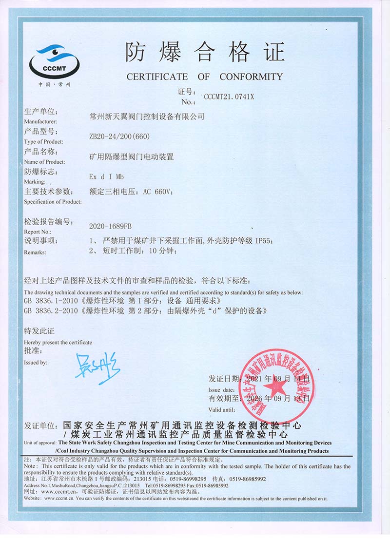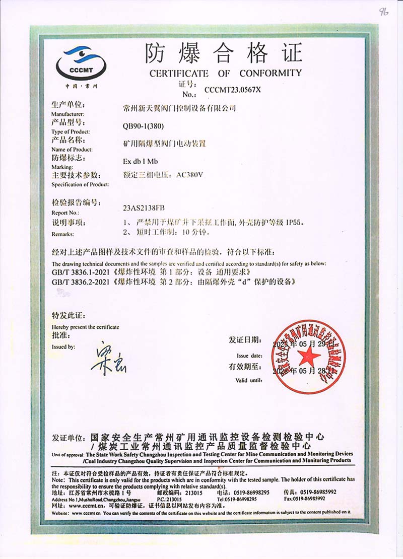隔爆型DZB 中國國家強制性產品認證證書108.1